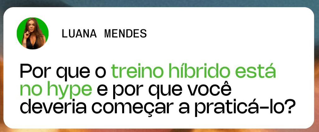 Híbrido vai além do treino: é sobre unir força e resistência para construir um corpo completo e uma mente preparada. A Luana traz uma reflexão sobre essa integração.